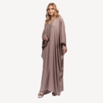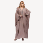 The Mayssa Gandoura exudes a style that is both understated and refined. Its lightly satin-finished taupe shade reflects modernity with a hint of mystery. Perfect for those seeking an elegant yet discreet look, this piece combines luxurious fabrics with a majestic cut.